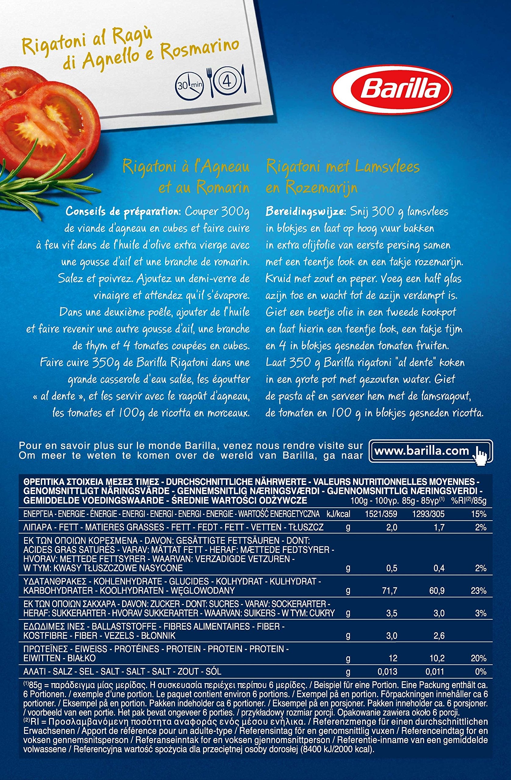 Barilla Pasta Rigatoni n. 89, 500 g